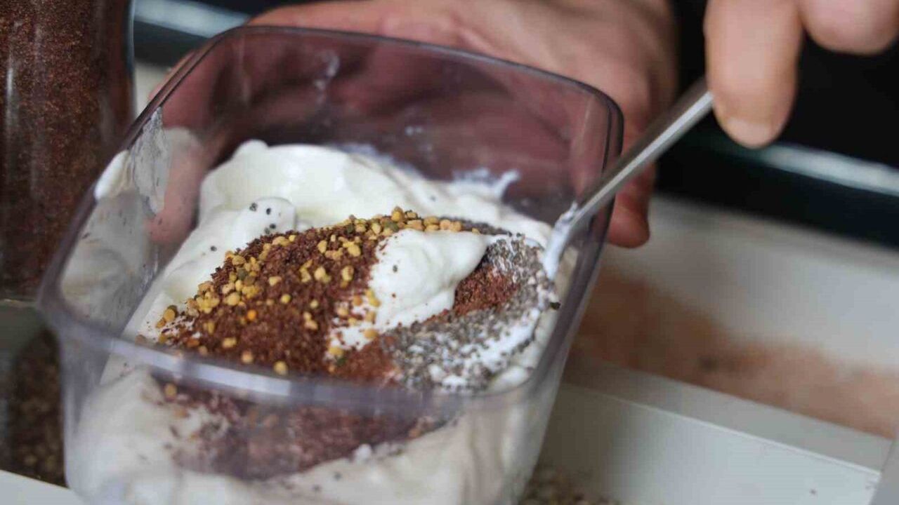 Karışımın faydaları noktasına dikkat çeken Çebiç, "Biz bu karışımı yaparken ana maddemiz yoğurdun içerisine üzümün çekirdeği, polen, chia tohumu ile güzel bir karışım yaptık. Bu neye iyi gelmektedir; bu tok tutucu özelliği sayesinde oruç tutanların, spor yapanların, koşuşturmalı iş hayatı yaşayanların, okula giden çocukların gün içerisindeki zindeliğine ve hareketliliğine katkı sağlamaktadır. Bununla birlikte hastalıklara karşı bağışıklığı güçlendirerek aynı zamanda tam bir metabolizma çalıştırıcı karışım oluyor. Özellikle diyet yapanlara mutlaka ev yapımı yoğurt ve chia tohumunu tavsiye ediyorum. Bunu bir de polen ve üzüm çekirdeğiyle renklendirdiği zaman çok doğal, sağlıklı bir besin elde edilmiş oluyor. Bu karışımın sahurda çok fazla tüketilmesini öneriyoruz. Çünkü gün içerisindeki vücudun susuz kalması, özellikle oruç tutanlarda gün içerisindeki halsizlik, bitkinliğe çok iyi geliyor. Polen, yoğurt, üzüm çekirdeği ve chia tohumu mükemmel bir antioksidan özelliğe sahip olmasıyla birlikte bununla hem bağışıklığı güçlendirir hem de vücudun ödem atmasına katkı sağlar" diye konuştu.