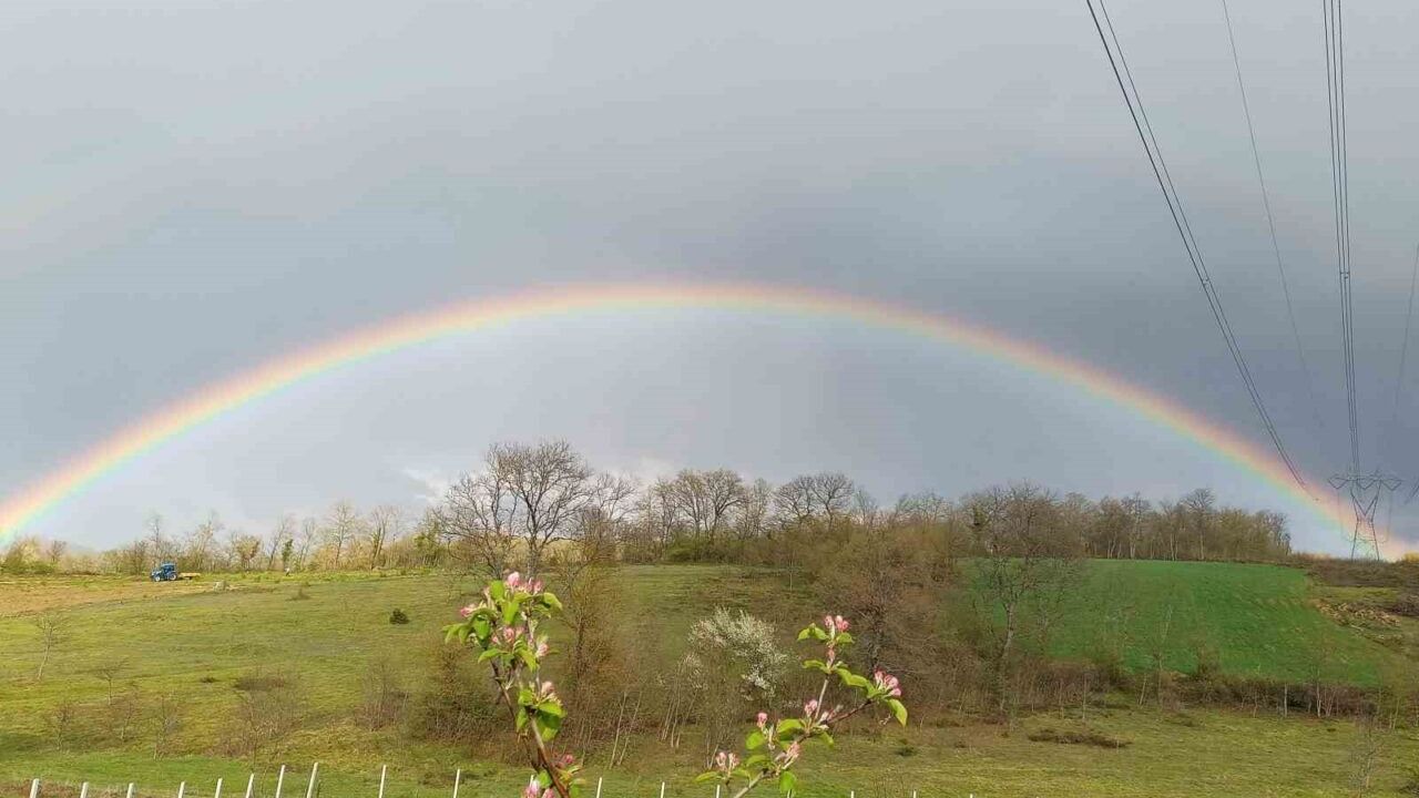 Şehrin yüksek kesimlerinde aralıklarla etkili olan yağmurun ardından gökyüzünde gökkuşağı belirdi. Kısa süreli yağmurdan sonra ortaya çıkan rengarenk görüntü, görenleri kendine hayran bıraktı. Gökkuşağını cep telefonu kameralarıyla görüntüleyen vatandaşlar, bunları sosyal medya hesaplarından paylaştı.