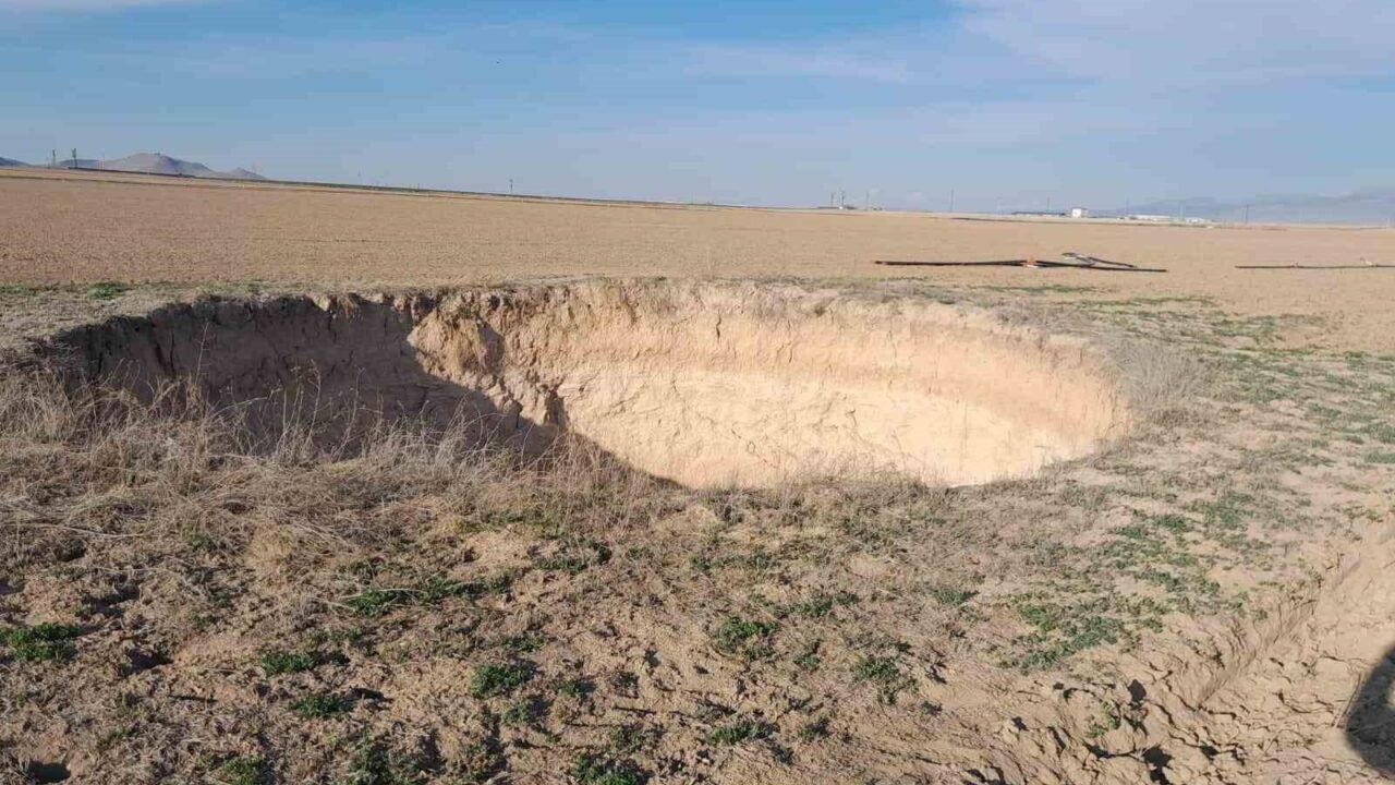Karapınar ilçesi Apak mevkiinde Ahmet Boztaş’a ait 220 dekar tarlada 6 yıl önce oluşan obruk, toprakla doldurularak ekime devam edildi. Ancak geçtiğimiz günlerde tarla sahipleri, aynı noktada yeniden çökme meydana geldiğini fark etti. Tarlada herhangi bir sorun görülmeden uzun yıllar ekim yapılmasına rağmen, son dönemde yaşanan çöküntü tedirginlik oluşturdu. Çiftçiler, çöküntünün yaklaşık 15 gün önce meydana geldiğini tahmin ediyor.