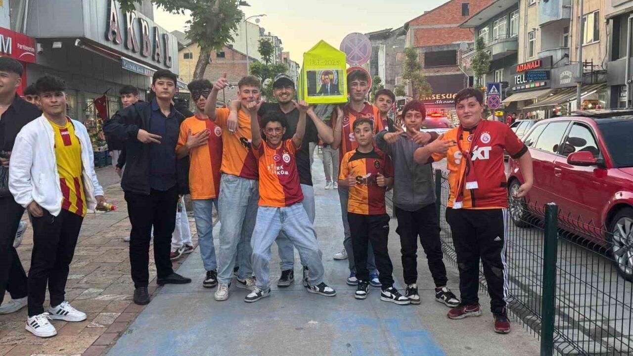 Zonguldak’ın Çaycuma ilçesinde Galatasaray taraftarları toplandı. Ellerinde meşaleler, bayraklar ve davullarla ilçeyi turlayan kalabalık, ilginç bir kutlamaya da imza attı. Taraftarlar, üzerine Fenerbahçe logosu yerleştirilmiş sembolik bir tabut taşıyarak ilçede kortej yaptı. Kalabalık zaman zaman "Beşinci yıldız armağan olsun" şeklinde tezahüratlar attı.